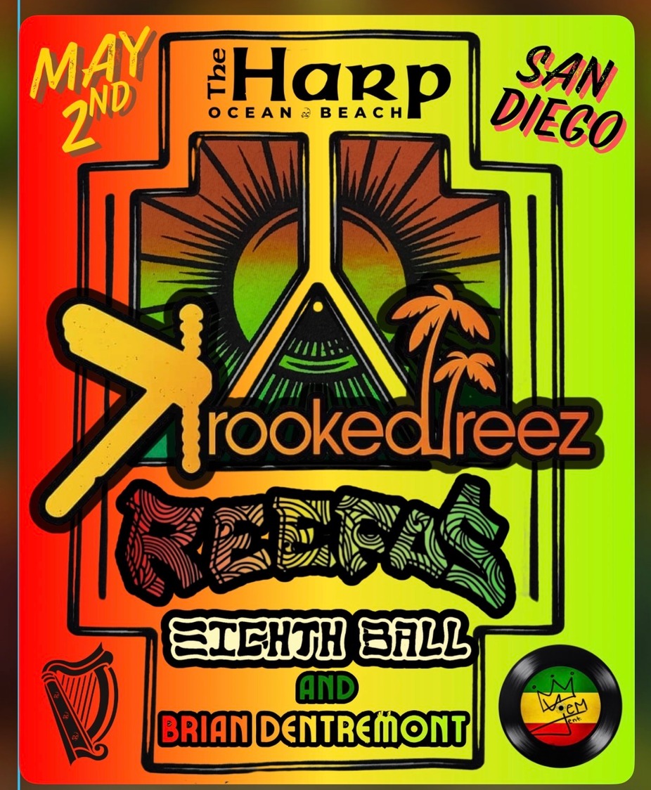 Krooked Treez, Reefas, Eighth Ball, and Brian Dentremont live at The Harp Ocean Beach 🎶 📅 May 2nd 📍 San Diego, CA Join us for a night of reggae and live music vibes in OB.